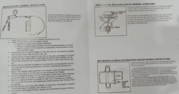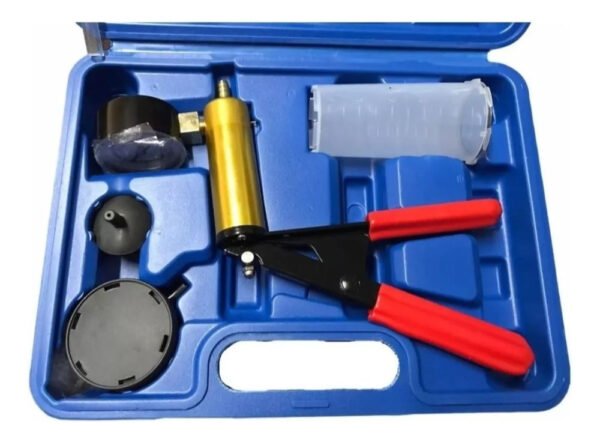 Este completo Kit de Bomba de Vacío sirve para purgar frenos tanto de autos y camionetas como de motos.